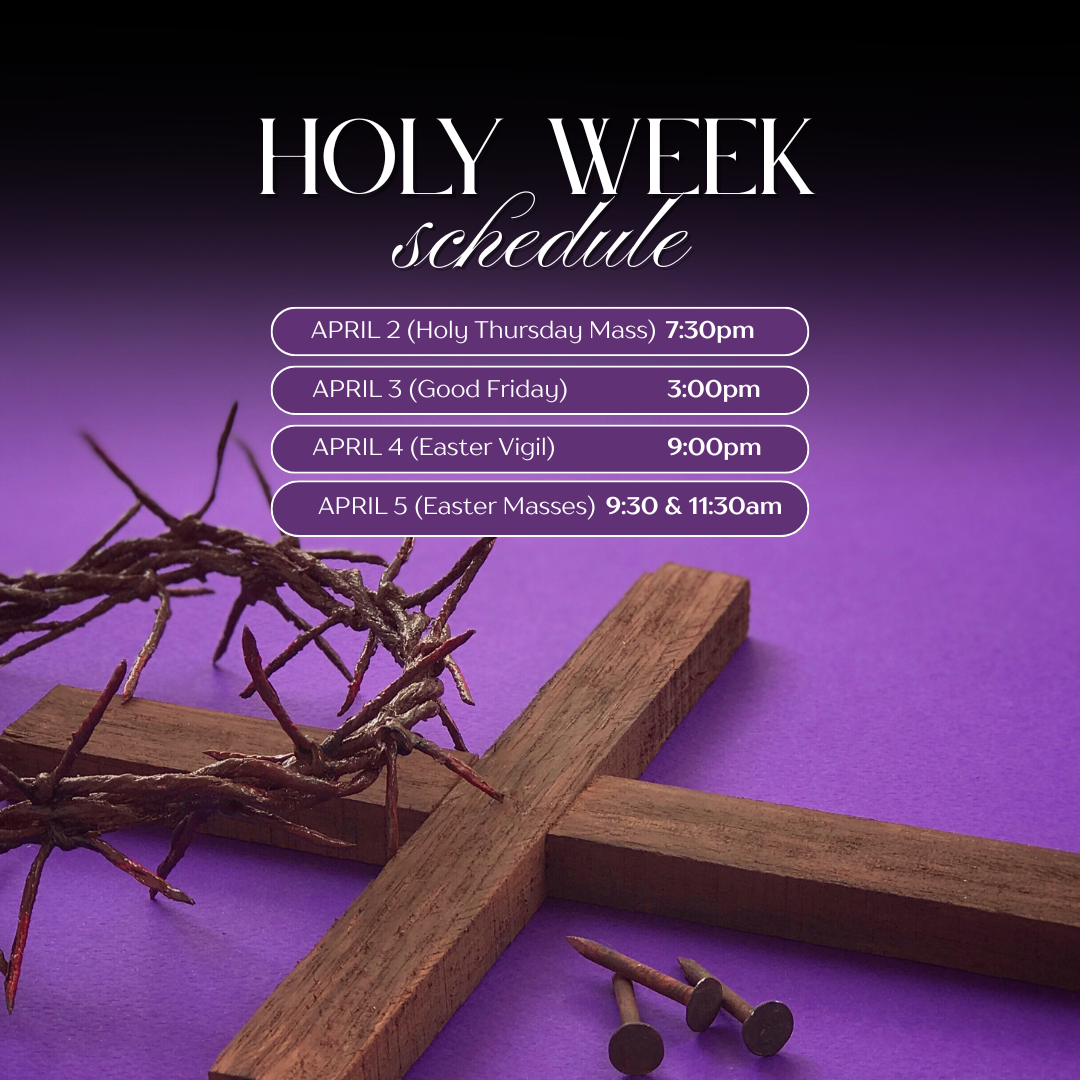Join us for 30 minutes, an hour, or longer as we adore Christ in the garden on Holy Thursday evening. To sign up for a specific time, please click HERE.