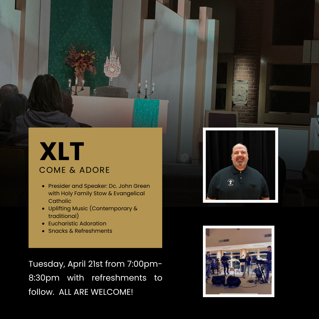 Join us for an amazing experience of Adoration and Praise & Worship Music on Tuesday, April 21st, from 7 to 8:30 pm.